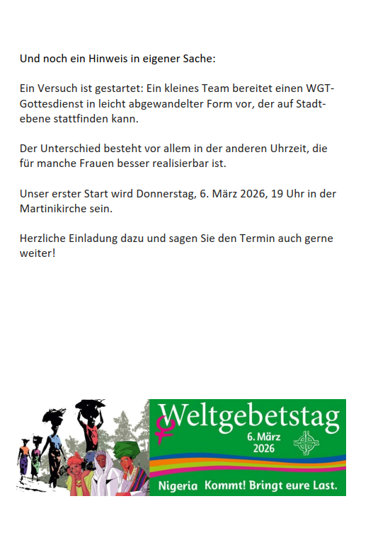 Unser erster Start wird Donnerstag, 6. März 2026, 19 Uhr in der Martinikirche sein.